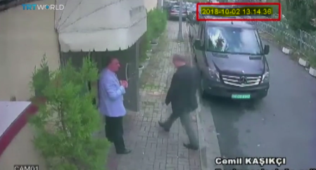 At 10:30 a.m. on October 2nd Turkish officials working in consulate are told to leave because a meeting is going to take place at the consulate. According to CCTV footage, Mr. Khashoggi entered the consulate at exactly 1:14 p.m. on October 2nd. Before entering the consulate, Jamal gave his wife Hatice two cellphones and told her to contact the Turkish government if he did not reappear. At 4:00 p.m. later that day 6 vehicles were captured on CCTV cameras leaving the consulate.