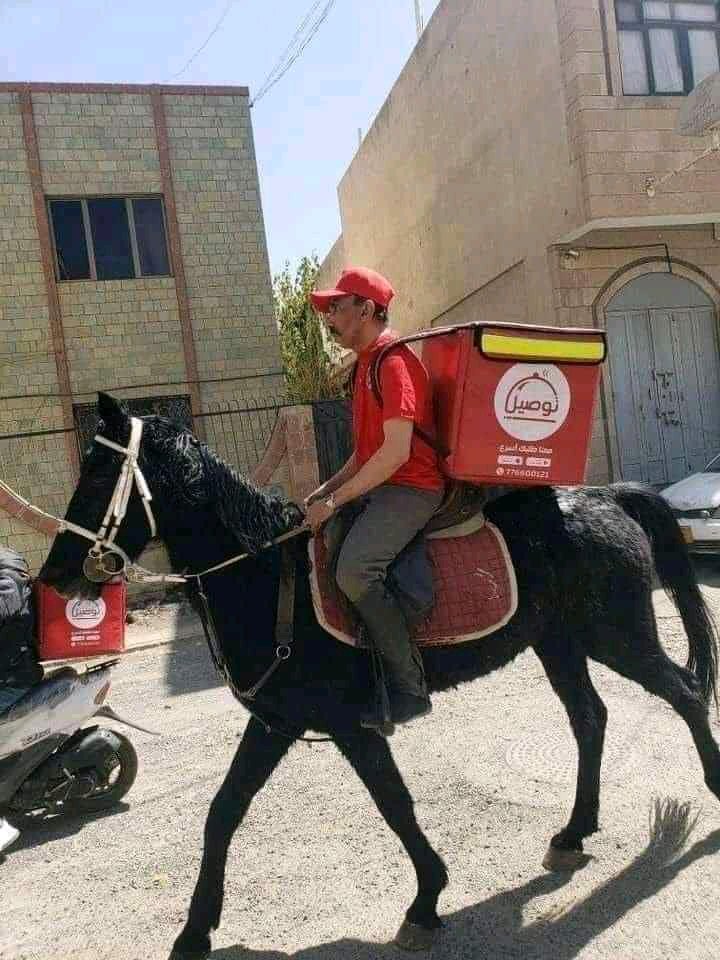 Thought the yemenies are fighting this with bravery courage & creativity , making ways to keep floating & paddling their canoe in these dark days ,Like this man in the picture on the horse.
