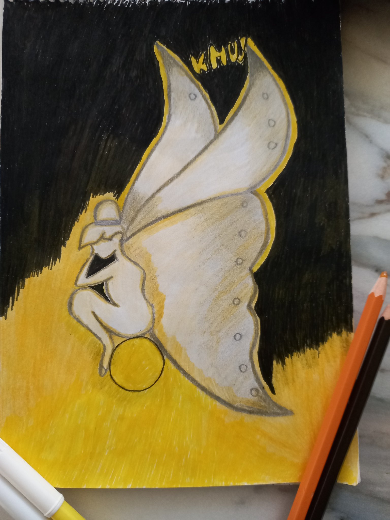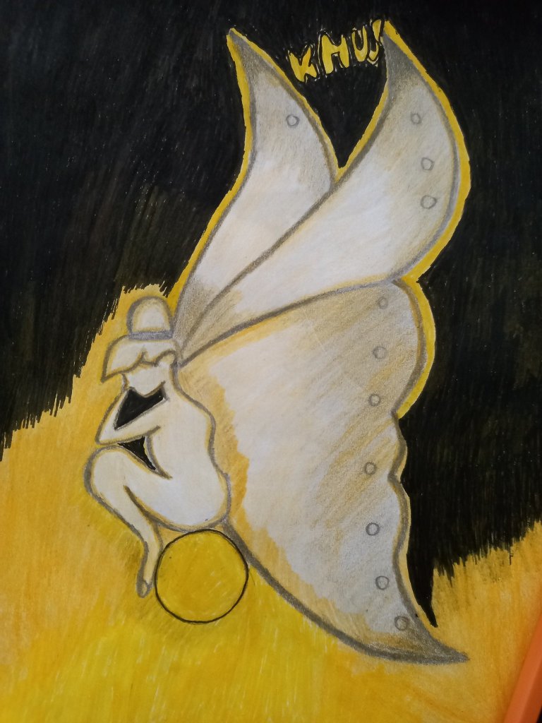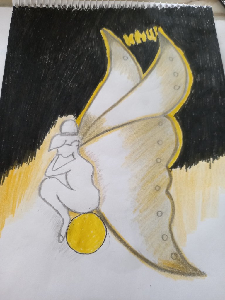 Something about this drawing ! This art is showing an imagination when I look up at the full moon , as my heart is always pulled towards the full moon. Especially when it has that golden light , the calm and bright energy makes me wonder ,perhaps there’s a life on the moon , a winged , fairy like creature living on the moon, with their cottages under the mushrooms and coloured dresses. Especially during hot summer days , when the night comes with a full moon , spreading its captivating energy and light through the darkness of the night , with cool breeze , serene and calm ,the mind goes spinning fairy tales.It’s the same idea in this drawing, perhaps a fairy with its gigantic wings is sitting on the moon , looking down at us ,the darkness behind her is the space and the light of the moon is spreading through her body and wings aswell. If you use your imagination, you can feel it is too. And the world of day dreaming is simply bewitching for the soul .