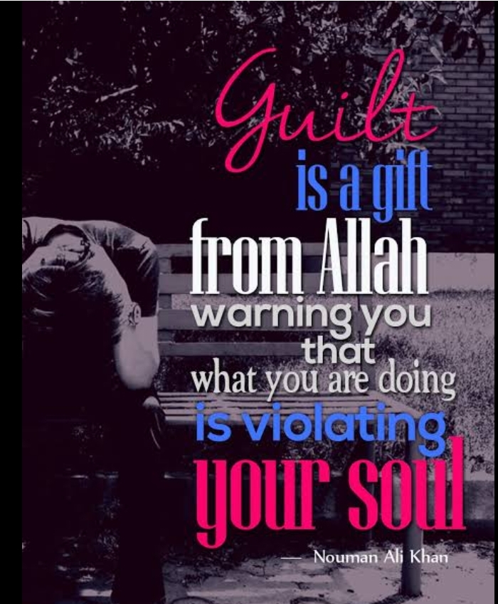 All of this does not happen overnight ,in a swift moment, it is such a slow and gradual process that one does not even have the time to apprehend what is happening to them. Usually it begins with one rebellion ,when one decides to take the plunge , there could be any reason, it could be any factor in that individual’s life that could lead the individual towards that dangerous direction, sometimes it’s the family pressure or culture ,sometimes it’s the desire to have more,comparisons , wordly expectations, to exploration new experiences. The idea of fun and entertainment especially in this age where the youth is bombarded with the ideas that you only live once , so live it the way you intend to , beyond the idea of right and wrong. You must enjoy every moment of your life on this planet ,ignoring the fact that there is no perfection, there is no complete happiness ,because this world is a testing place not a resting place, there will always be tests and trials always ,but let’s talk about guilt.